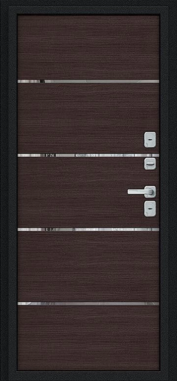 Надежная входная Дверь Браво Thermo Лайн/BChrome Букле черное/Wenge Melinga премиум класса по цене 46 887 руб. Большая толщина стали защитит от проникновения в ваш дом, квартиру или коттедж. Используется очень качественная фурнитура: замки, цилиндры, ручки, защелки. Покрытие и отделка двери изготовлено под внимательным контролем производителя. Дверь имеет долгий срок службы и гарантию.